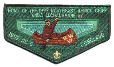 In 1993, Kiasutha Lodge #57 (Allegheny Trails) merged with Tanacharison Lodge #67 (East Valley Area) to form Enda Lechauhanne Lodge #57, Greater Pittsburgh Council. One of their first events was hosting the 1993 Section NE-5 Conclave.